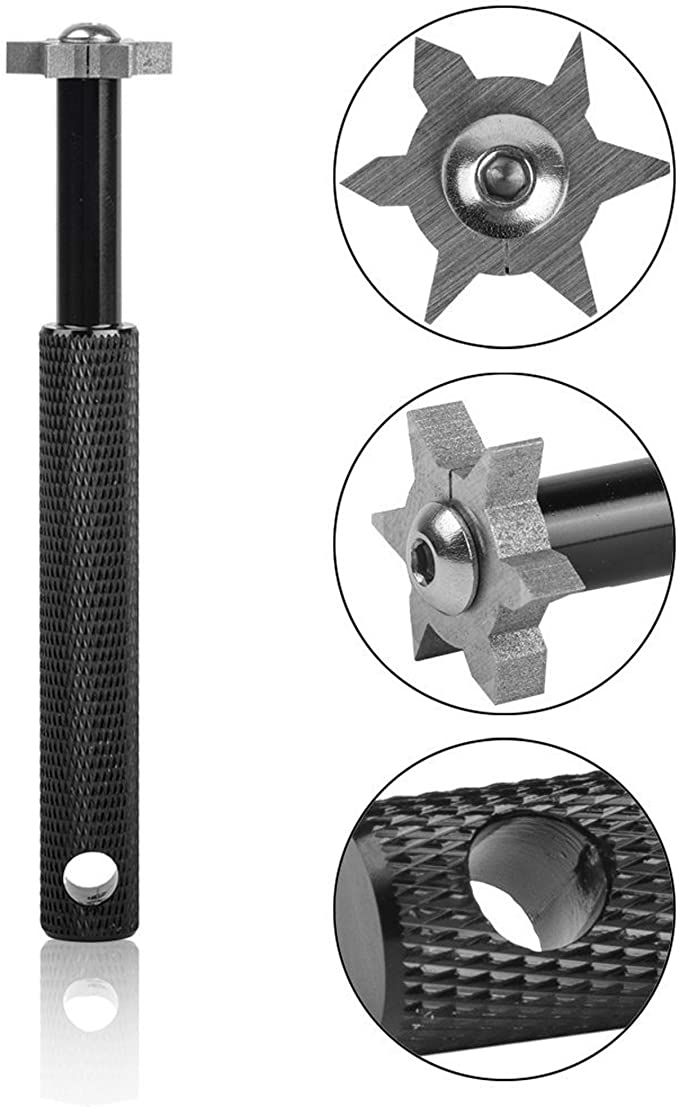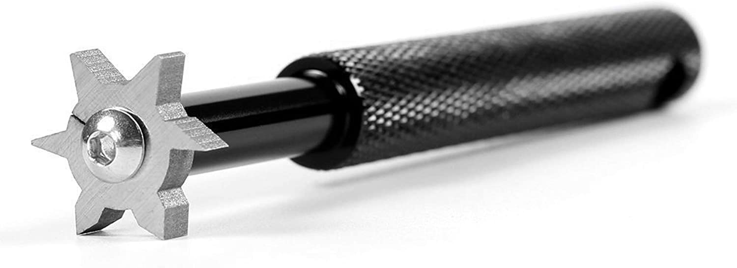 Groover działa poprzez ostrzenie krawędzi w rowkach kija. Cechy: Wyostrza U, V i kwadratowe rowki i jest w pełni zgodny z limitami klubu golfowego ustalonymi przez USGA i R & A. Groover zawiera 6 głowic ostrzących.