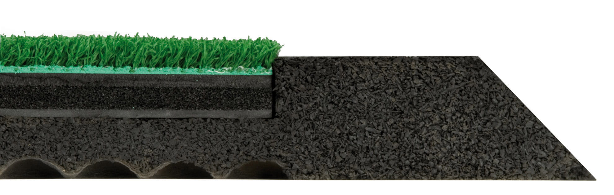 - Gumowy podkład z granulatu gumowego o grubości 20 mm ma połączenie powietrza i elastyczności, co poprawia pochłanianie energii i amortyzację, zapewniając komfort gry. • Murawa jest połączona termicznie z podstawą, co zapobiega oddzielaniu się