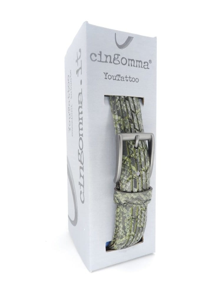 Pasek Cingomma YouTattoo jest wykonany z prawdziwej opony rowerowej przy użyciu całkiem fajnej techniki zwanej Water Transfer Printing.