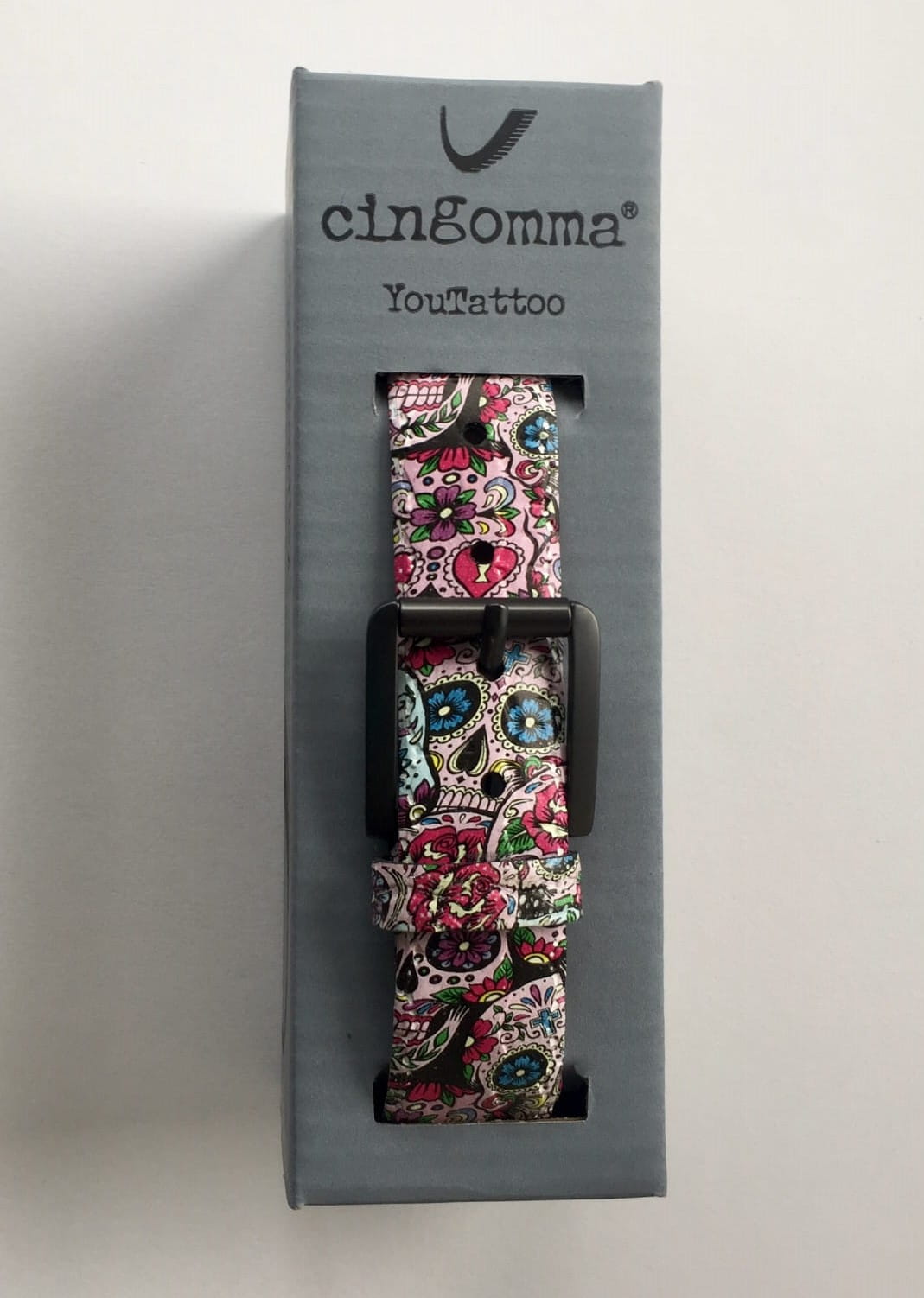 Pasek Cingomma YouTattoo jest wykonany z prawdziwej opony rowerowej przy użyciu całkiem fajnej techniki zwanej Water Transfer Printing. Jest całkowicie nietoksyczny dla ludzi i środowiska.