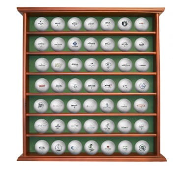 Brązowy stojak na unikatowe piłki. Świetnie sprawdzi się w przypadku kolekcjonowania piłek golfowych.